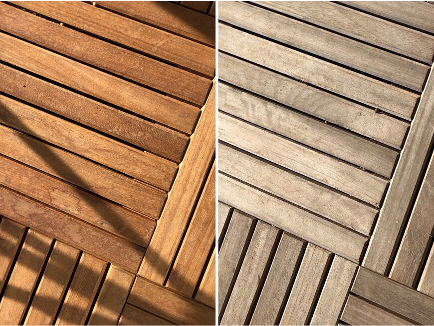 IDÉE REÇUE N° 1 : une fois coupé, le bois meurt et se décomposeMême coupé le bois reste "vivant" et continue d'interragir avec son milieu (UV, humidité...). Il est nécessaire de l'entretenir pour le garder en pleine forme. IDÉE REÇUE N° 2 : le bois grise à cause des UVIls ont une action sur le bois mais pas celle là, du moins très peu. Si c'était le cas, tous les bois bruts griseraient en intérieur au contact de la lumière, même avec une finition invisible. Sous l'action des rayons du soleil, le bois va brunir - excepté avec certaines essences comme le wengé, qui va s'éclaircir - et se déshydrater jusqu'à se fendiller s'il n'est pas protégé. Exactement comme comme avec notre peau.