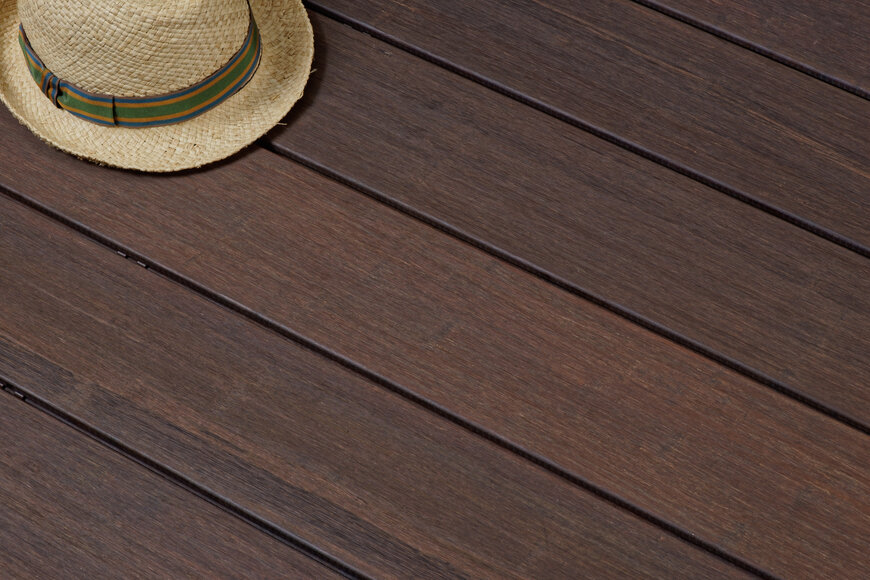 Qui n'est pas un arbre mais une plante. Elle est tellement résistante et pousse tellement vite que ce serait dommage de s'en priver !Pour la rendre imputrescible, plus dense et plus dure, la fibre de bambou est thermo-traitée avant d'être compressée, c'est-à-dire chauffée à très haute température. Devenue brune, elle évolue progressivement d'un teint caramel à gris argent. Le + : le bambou thermo-chauffé est plus stable dans le temps que n'importe quel bois exotique.