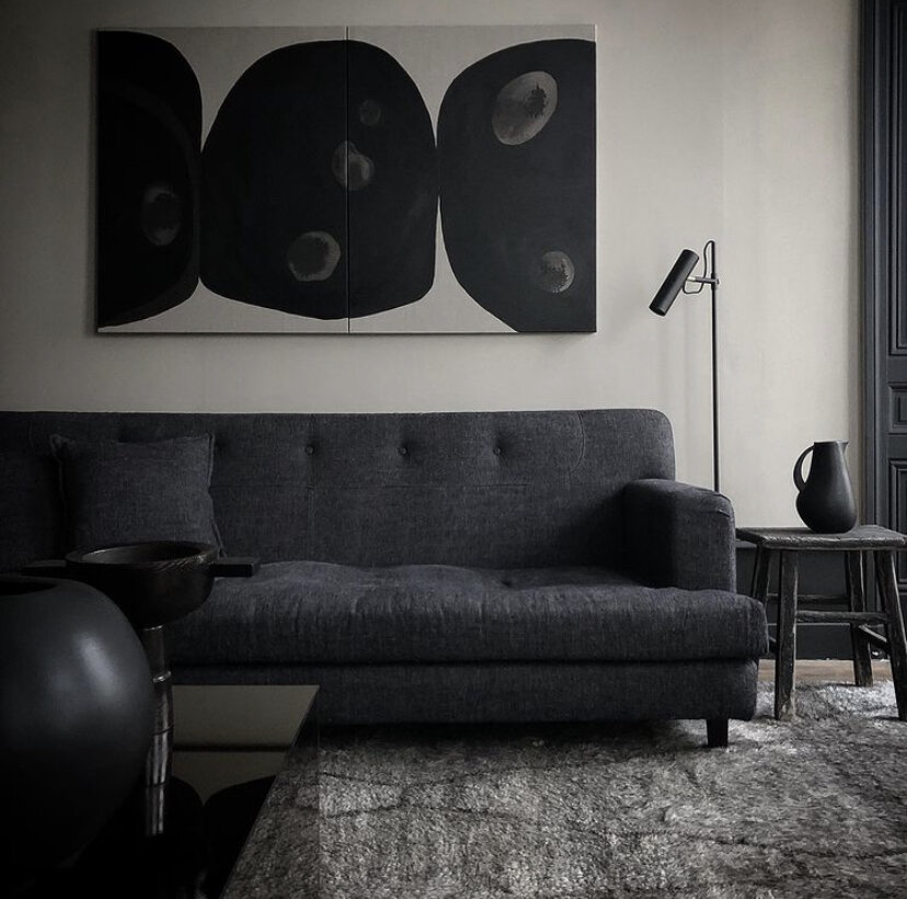 Malgré sa force, il a une subtilité évidente et assoit l’espace. A la fois sobre et graphique, associé à d’autres textures noires (velours, cuire, marbre), on le remarque davantage. Il s'impose, capte l’attention, peut être lumineux, donne du caractère.