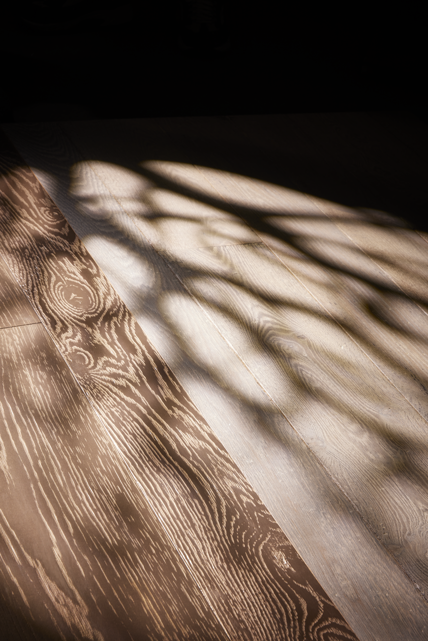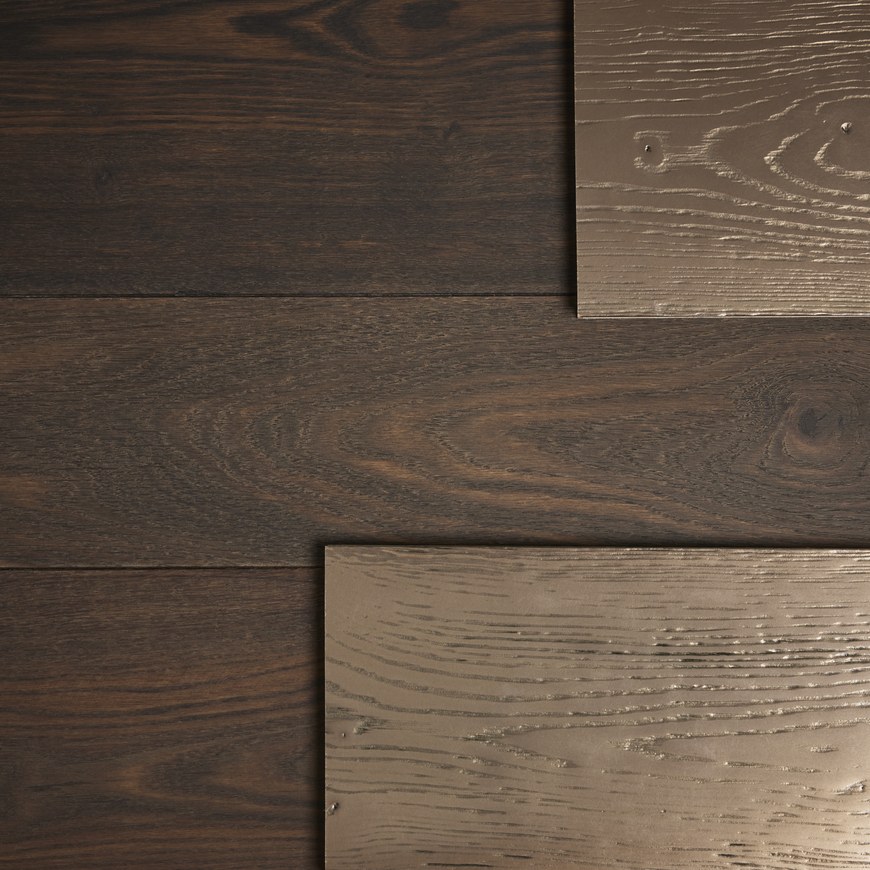 Le parquet métal c'est l'intégration à la main, lame après lame, de métal précieux et pur à 97% – argent, cuivre, bronze – directement sur un parement en bois massif.