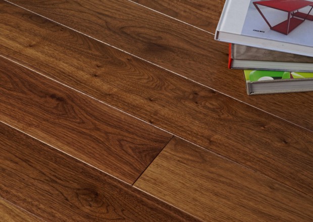 Lot 351 - Parquet Noyer US contrecollé PRBis avec aubier vernis satiné Click 14x139x495-1992
