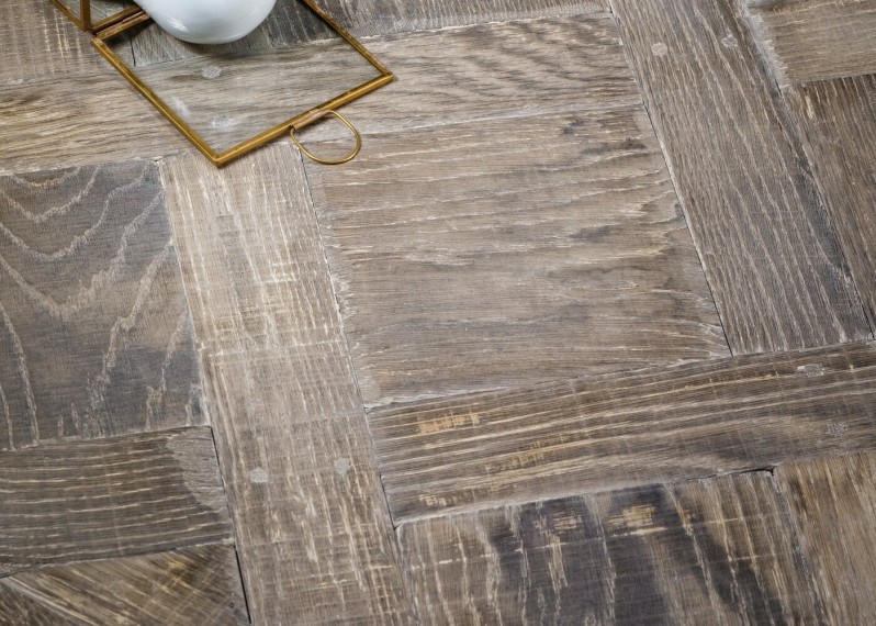 Lot 449 - 8.7 m2 - Plancher chêne massif avec patine antiquaire Usé brossé Huile aqua 22x140-210x1500-2500