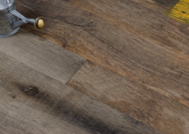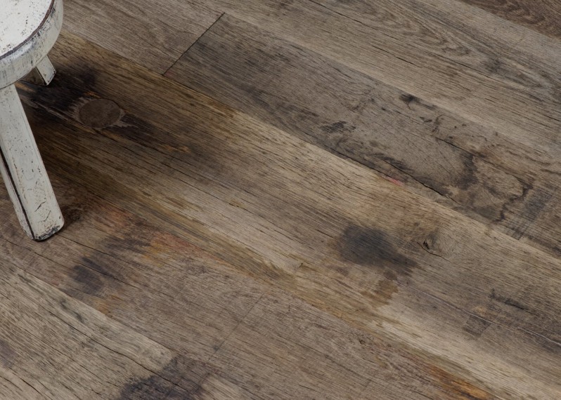 Un assemblage de bruns et taupes décolorés, des vieilles traces de peinture, des taches, fissures... ce vieux plancher à l'état brut trouvera naturellement sa place dans un environnement épuré ou à la déco affirmée.