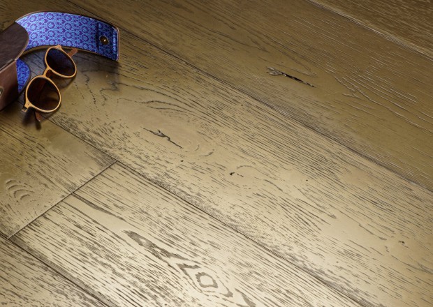 Les lames sont recouvertes d'une vraie couche de métal directement coulée sur le chêne et ayant les propriétés du métal solide. Elle donne un sol unique, singulier, aux reflets incomparables, comme on aime. A adopter en continu ou par touche, comme un motif.