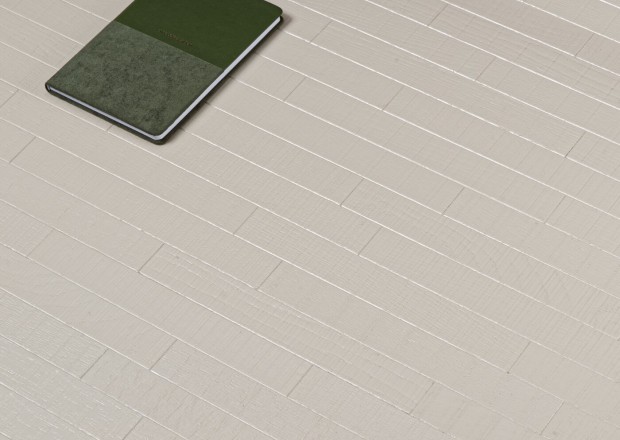 La surface des lames est brute et texturée (brut de sciage ou brossée). Après la pose, on les recouvre d'une micro-résine protectrice, teintée et opaque, qui imprègne parfaitement la matière. Très couvrante, elle dissimule le veinage du bois tout en laissant sa texture apparente. La surface est ensuite protégée par un vernis semi-mat qui donne au parquet un éclat satiné et un toucher soyeux. Ce cycle de finition, réalisé par un professionnel, est éco-compatible et garantit des niveaux élevés de protection contre l’usure et l’abrasion du bois. Y compris l'humidité. Ce qui rend ce sol idéal en salle de bain.