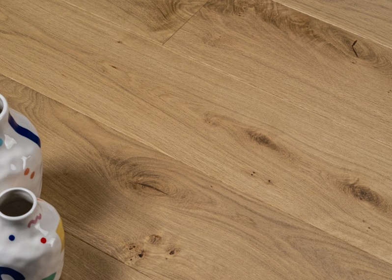 Parquet chêne contrecollé WAGRAM brossé huile UV Matière support CP 14x150x1940