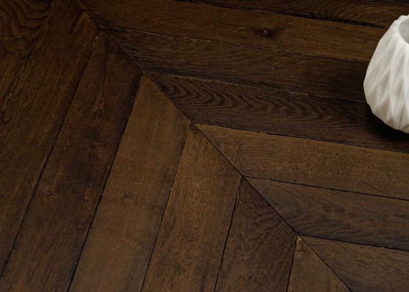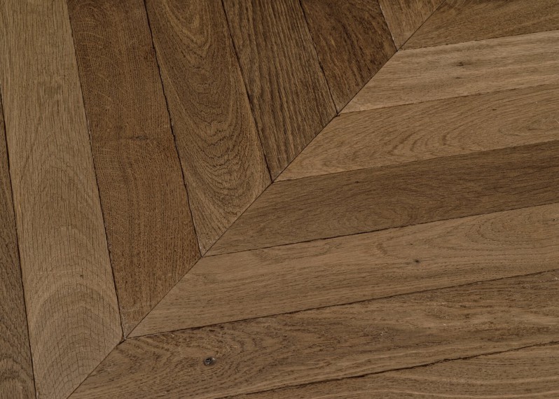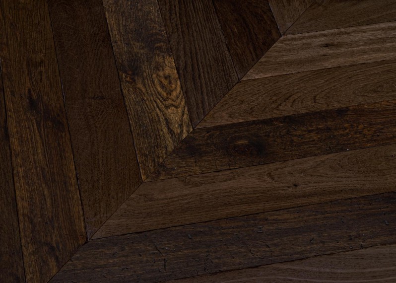 Parquet chêne massif GLASGOW Point de Hongrie Elégance vieilli huile cire 14x90x600 45°